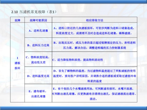 E、有個別的幾個水嘴濾液渾濁,可判斷濾布損壞,水嘴不流液,