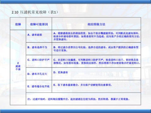 B、濾布選擇不當 B、將過濾介質帶回公司化驗,選擇合適的濾布,或由客戶提供的正確濾布型