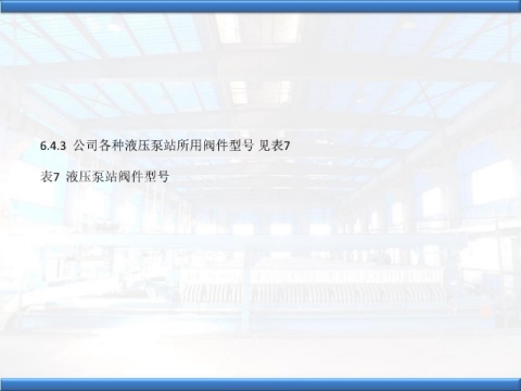 6.4.3  公司各種液壓泵站所用閥件型號 見表7