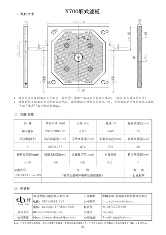 名 稱 外形尺寸(mm) 壓力(MPa) 溫度(℃) 濾板厚度①(mm)