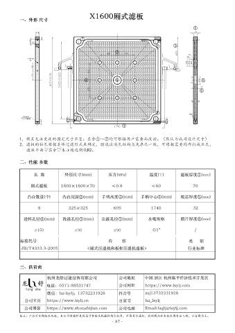 名 稱 外形尺寸(mm) 壓力(MPa) 溫度(℃) 濾板厚度①(mm)