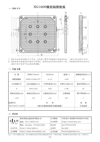 名  稱            外形尺寸(mm)              壓力(MPa)              溫度(℃)         隔膜板厚度①(mm)