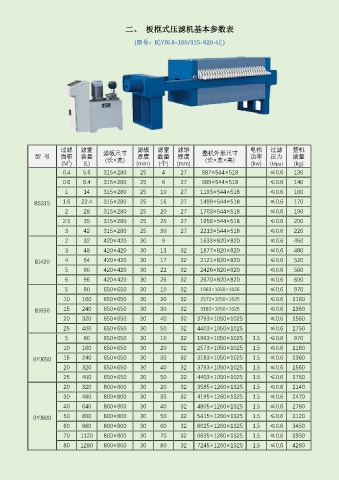 型 號 麵積 容量 濾板尺寸 厚度 數量 厚度 整機外形尺寸 功率 壓力 質量