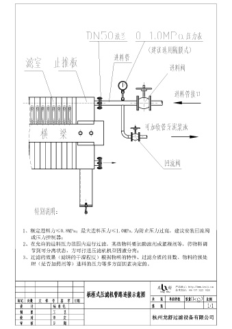1、額定進料力≤0.8MPa;最大進料壓力≤1.0MPa.為防止壓力過高,建議安裝回流閥